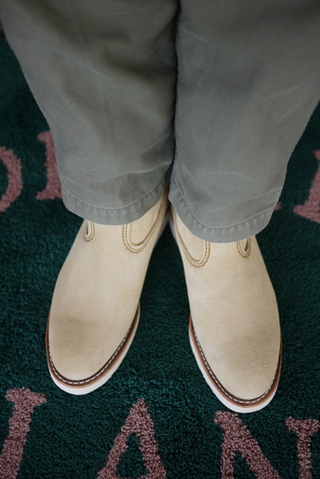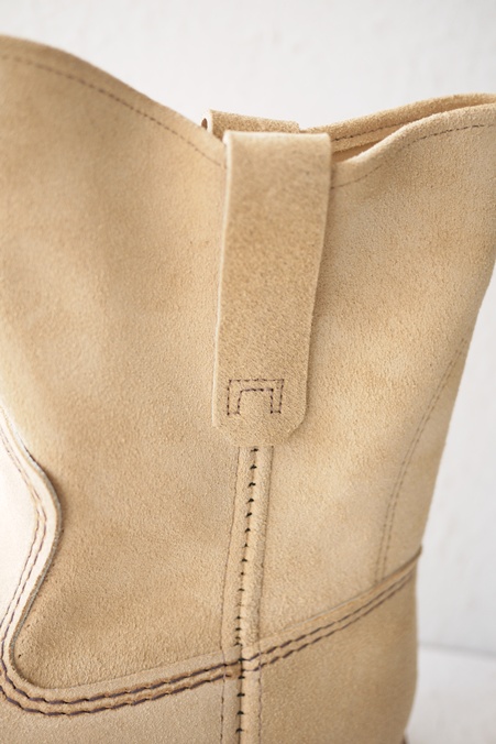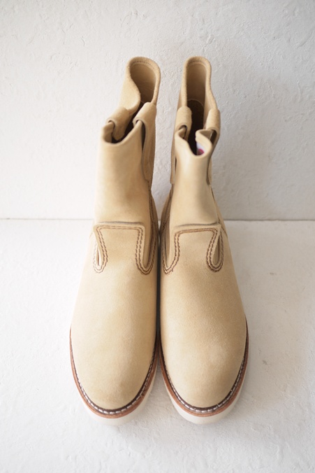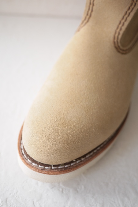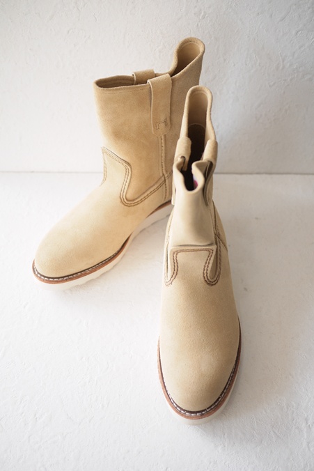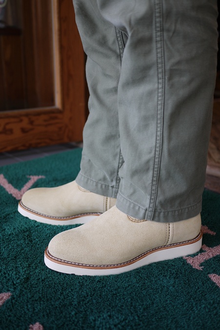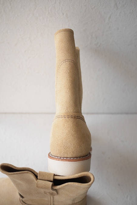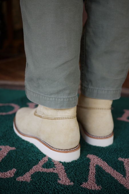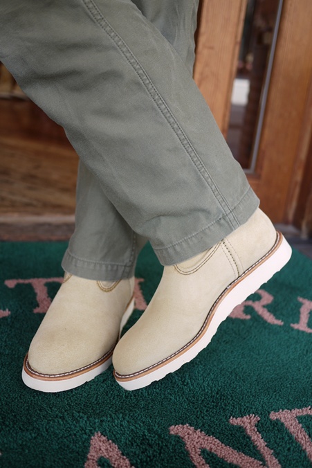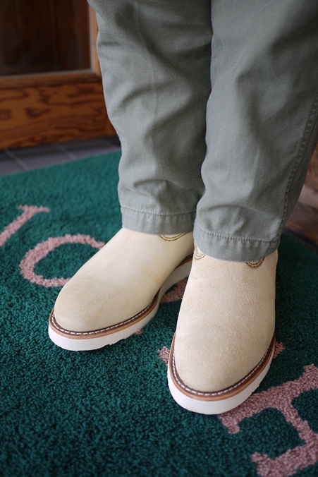 ベージュスエードの白底ペコス、