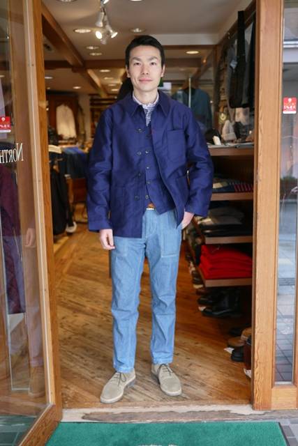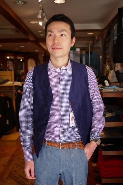 フレンチ・モールスキンで仕立てたワークベストです。