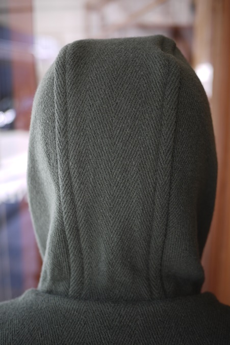フードは立体的な3枚はぎ。