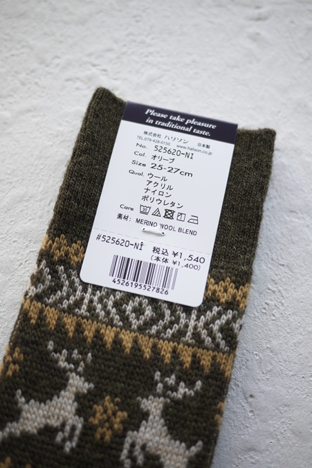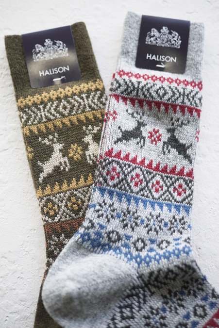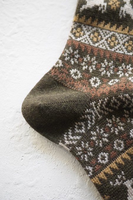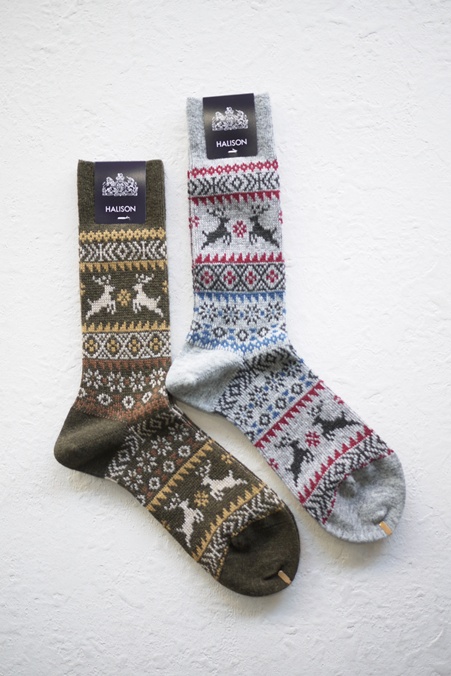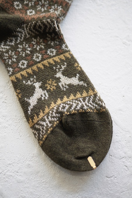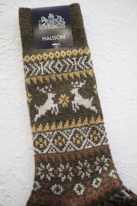 HALISON #525620 "MERINO REINDEER SOCKS" OLIVE(NI)
