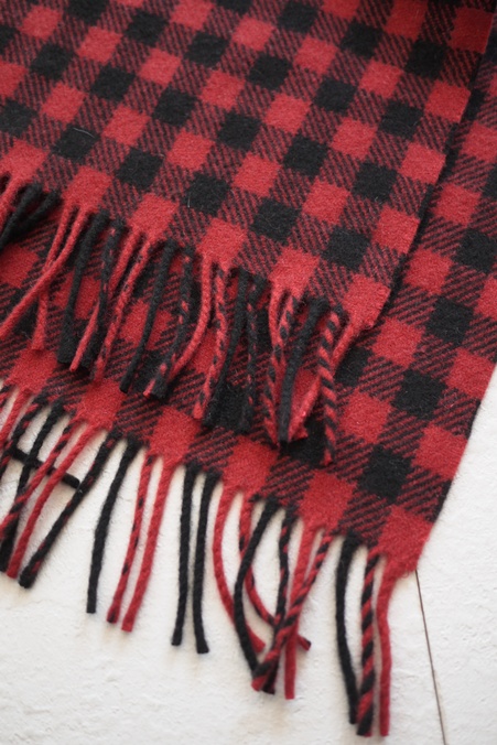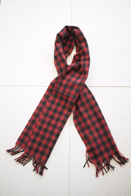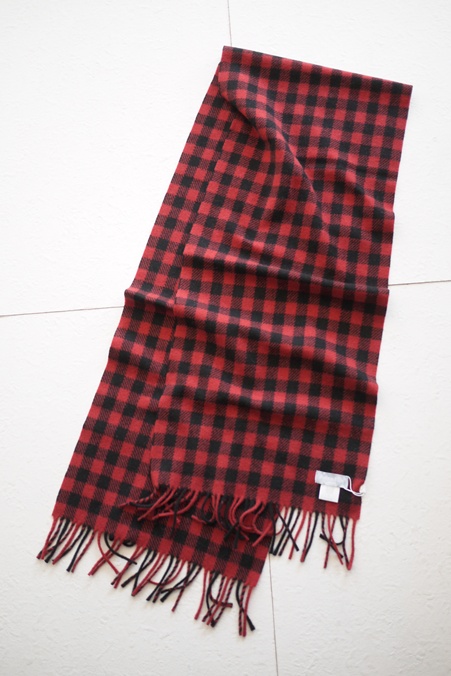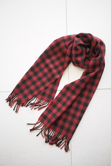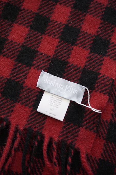 JOSHUA ELLIS CLASSIC HOUSE CHECK PURE CASHMERE SCARF BLACKxRED