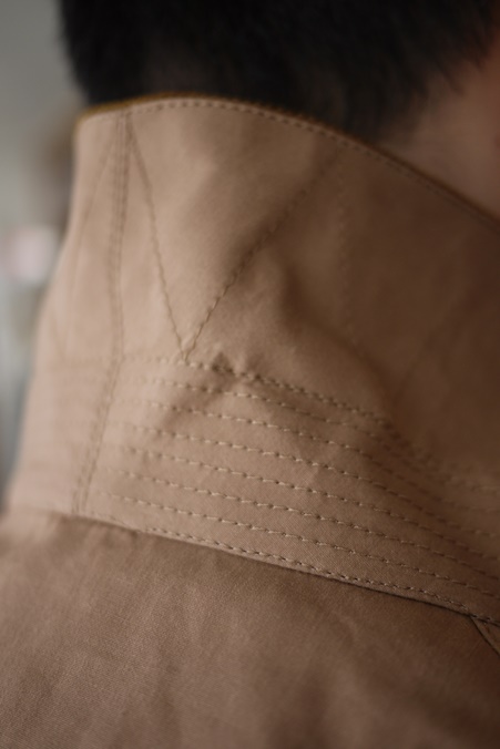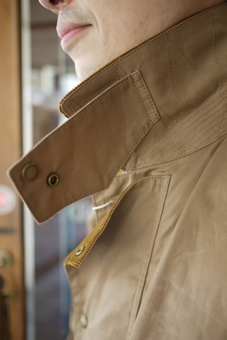 表襟にはコーデュロイ、襟裏にはスロートタブ付き。