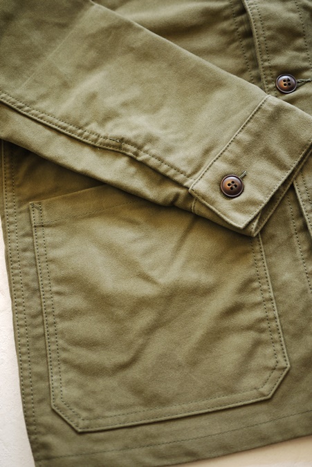 モールスキンパンツと同じ生地で仕立てたジャケットです。
