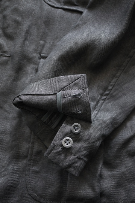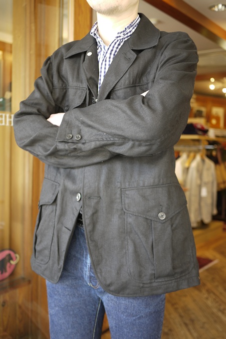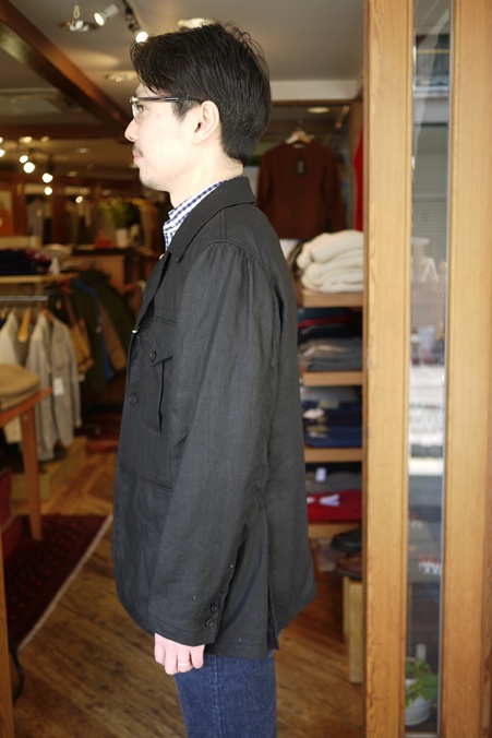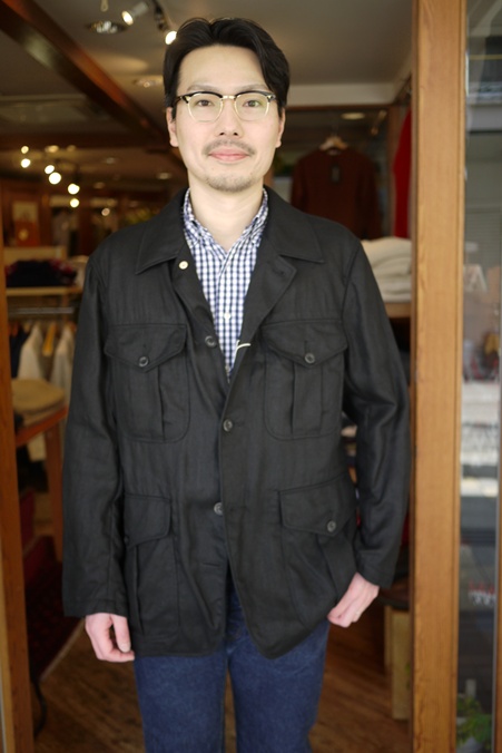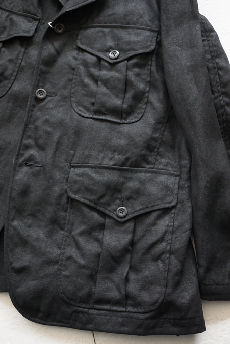 TAKE & SONS "NORMANDY LINEN BUSH JACKET" BLACK