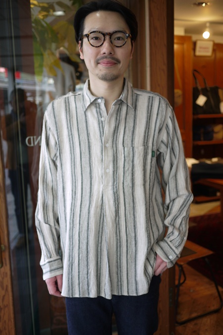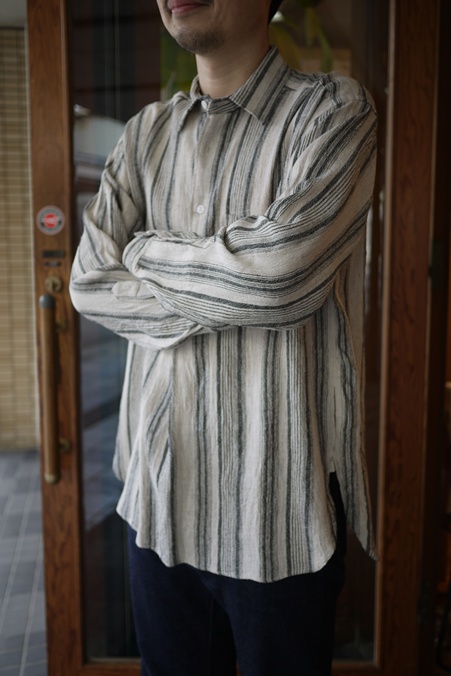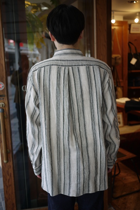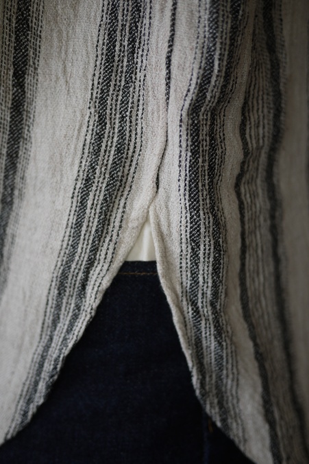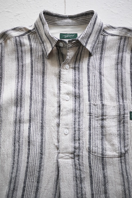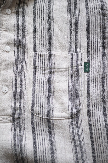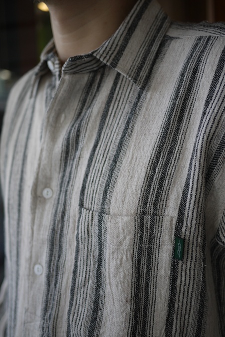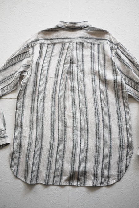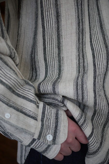 TAKE & SONS "LINEN TWEED GRANDPA SHIRT" STRIPE