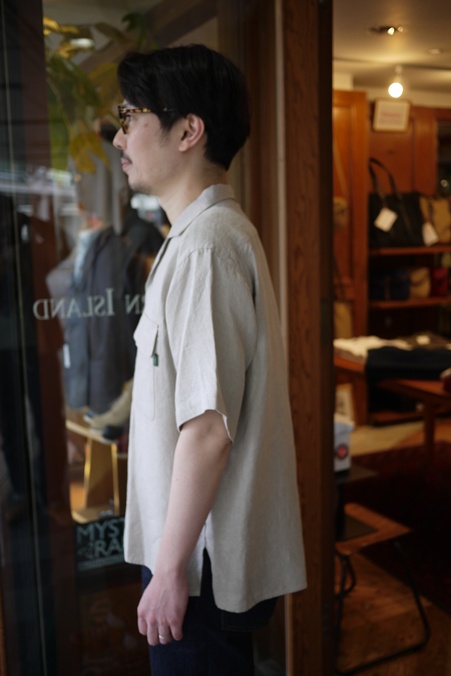 TAKE & SONS "LINEN OPENCOLLAR SHIRT" NATURAL