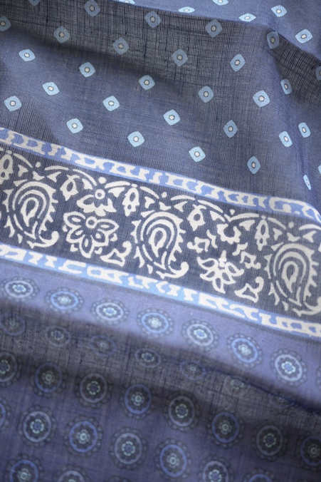 VINCENZO MIOZZA COTTON/LINEN SCARF #057429 NAVY PAISLEY COL.1