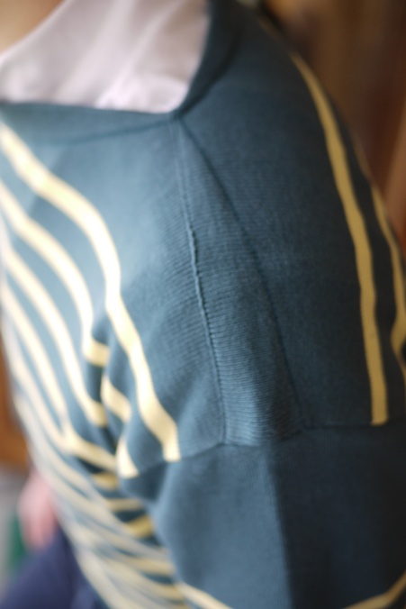 ほぼ長方形に編み込まれた前身頃と後ろ身頃は、