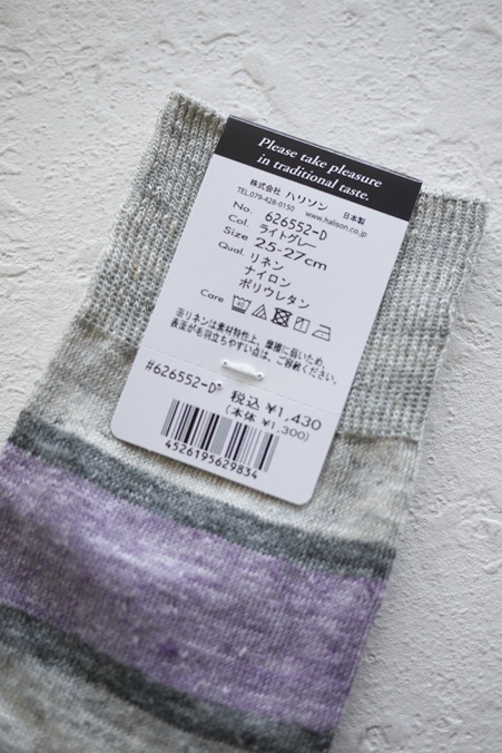 HALISON #626552 "LINEN RUGBY BORDER SOCKS" L.GRY(D)