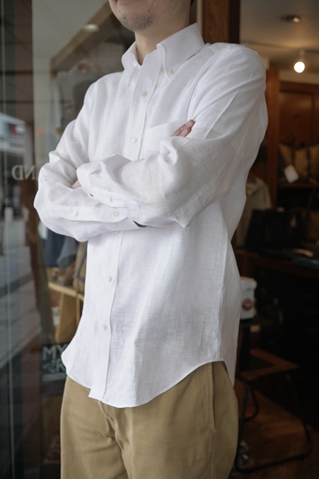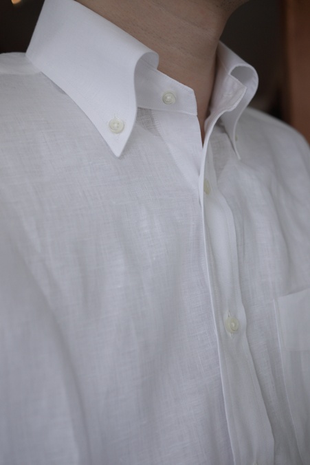 ボタンダウンの命である美しい襟のロールもおんなじです。