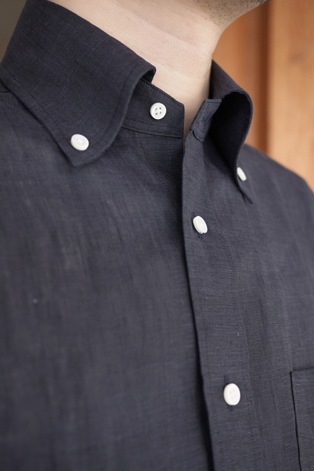 ボタンダウンの命である美しい襟のロールもおんなじです。