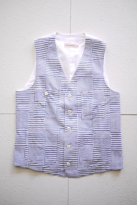 SOUTIENCOL "SEERSUCKER PATCHWORK VEST" #141005 NAVY(29)🎯SPECIAL PRICE