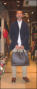 | ◆マネージャーの石井です。[身長174cm、体重60s] ジャケットはフランスのHONNETEのものです。もともと生地メーカーだったので、質感の高いコットンモールスキン仕立てで¥31,290。大変お値打ちです!カラーはネイビー、サイズは46を着用しています。 シャツはイタリアのGUYROVER。カノコのプルオーバーのボタンダウンで一年中着ています。¥17,640。サイズはSです。 パンツはnorthern island別注のF.O.B製。5ポケットです。ツイルのボタンフライ、太すぎず細すぎず絶妙のシルエットです。F.O.Bは日本のジーンズ生産のメッカともいえる岡山・児島のファクトリーで、良心的な物作りに定評があります。¥10,290。サイズは30インチ。 トートバッグはフランスのTAMPICOのオールレザーのモデルです。ヌメ革の表情がなんとも言えません。同素材のショルダーもおすすめです。¥36,750。 靴は泣く子も黙るJOHN LOBBのBARROS。大変使い回しがききます。一度足を入れると病みつきになります。価格も納得できます。¥126,000。 |