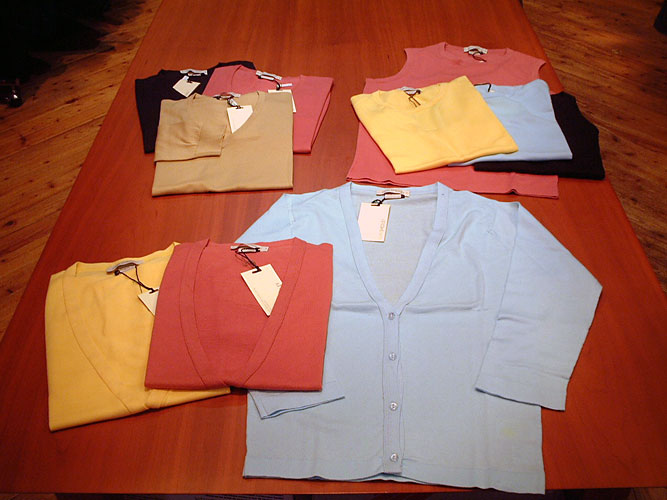 春らしいカラフルな色が揃いました。シー・アイランド・コットンの肌触りが格別です。カーディガンは七分袖なので春〜夏にかけて使えます。またノースリーブと合わせてアンサンブルで使えます。