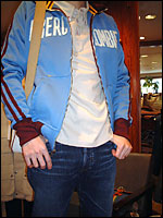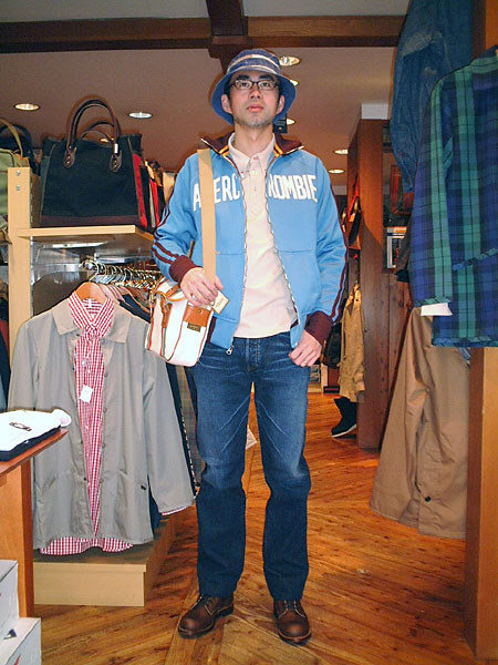 アバクロのトラックジャケットにF.O.Bの新作リアルウォシュジーンズをコーディネイト。