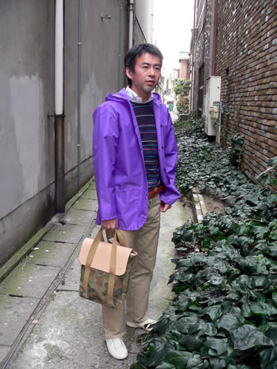バッグはタンピコです。男女問わず人気のショルダーです。靴はクロケットのディア・スエード・チャッカー。クレープソールで楽ちんな履き心地です。