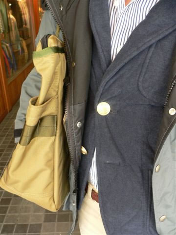 | コーディネート NO,3 またまた石井です。アウターは30年以上の大定番、元祖マウンパのシェラ・デザインです。こういうグレーにすると、またまた新鮮ですね。タナベは3色持ってます。なんだかんだいっても、いまだにMADE IN USA!中に着たジャケットはバイブリー・コートの新作です。メタル・ボタンがいいですね。シャツはノース・オブ・ヘイヴンのロンストです。パンツはノーザン別注F1043。靴はパラ・ブーツのルーソゥ。ゴム・ソールが万能の、オールマイティーなシューズです。バッグはなかなか入荷でご迷惑をおかけするブリーフィングのフライト・トート。このカーキもカッコイイですよ。米日仏のインターナショナルなあわせです。これもノーザンらしいですね。