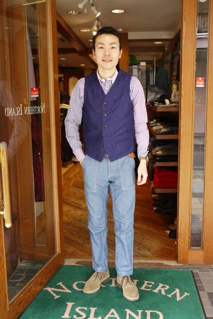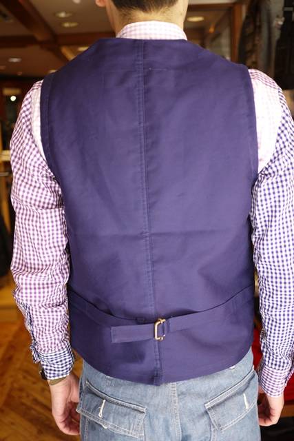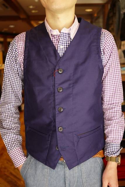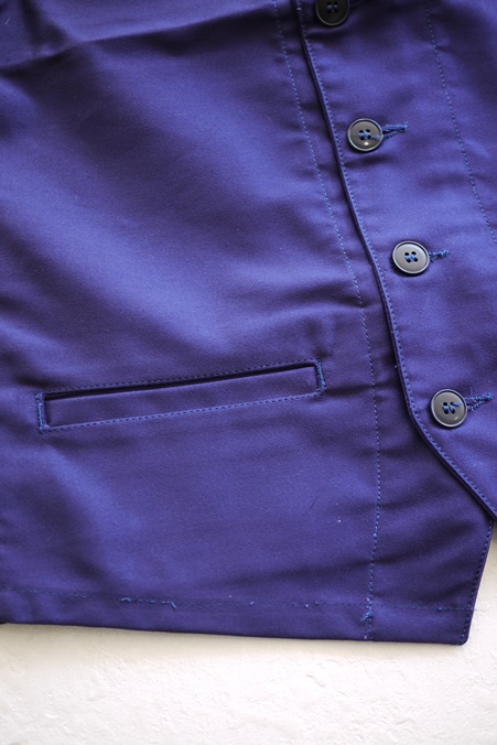 フレンチ・モールスキンで仕立てたワークベストです。