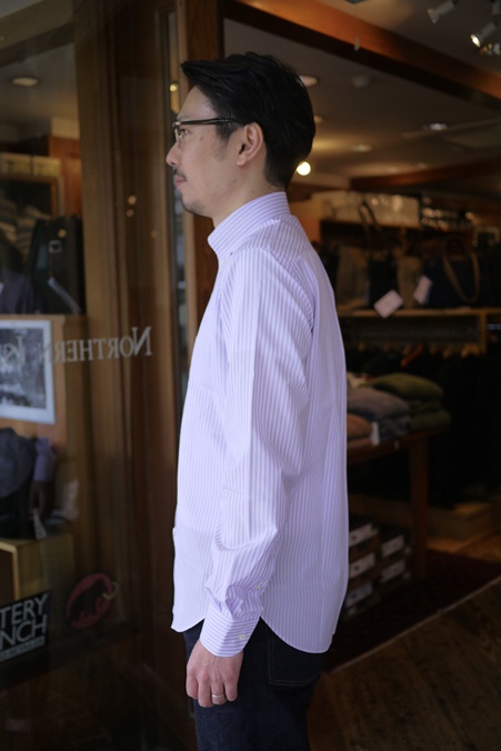 ボタンダウンの命である美しい襟のロールもおんなじです。