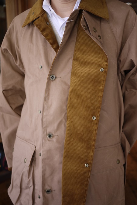 表襟にはコーデュロイ、襟裏にはスロートタブ付き。