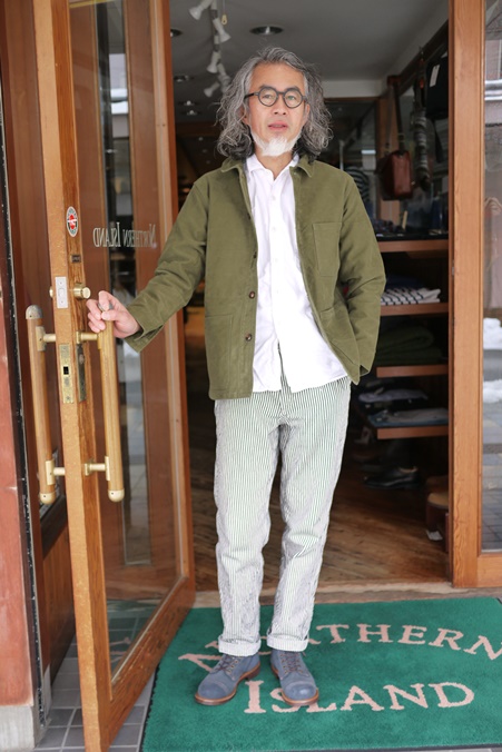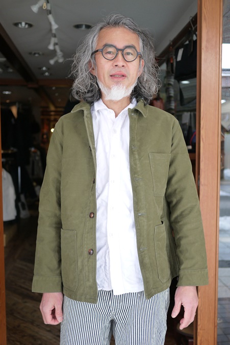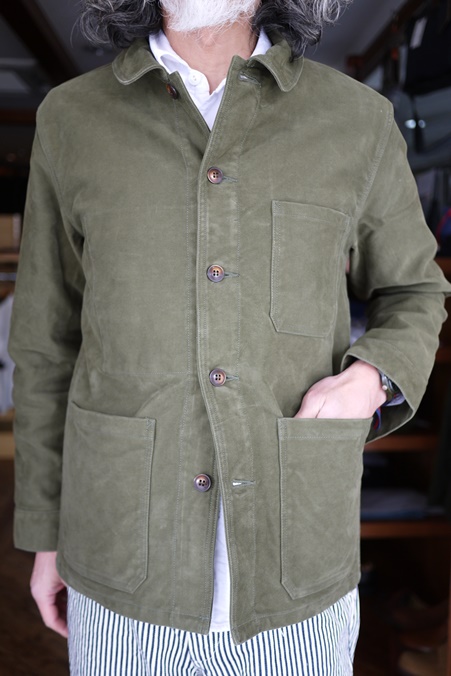 モールスキンパンツと同じ生地で仕立てたジャケットです。