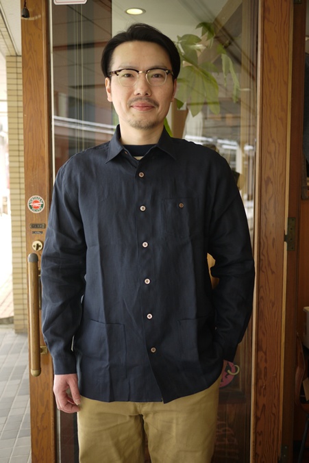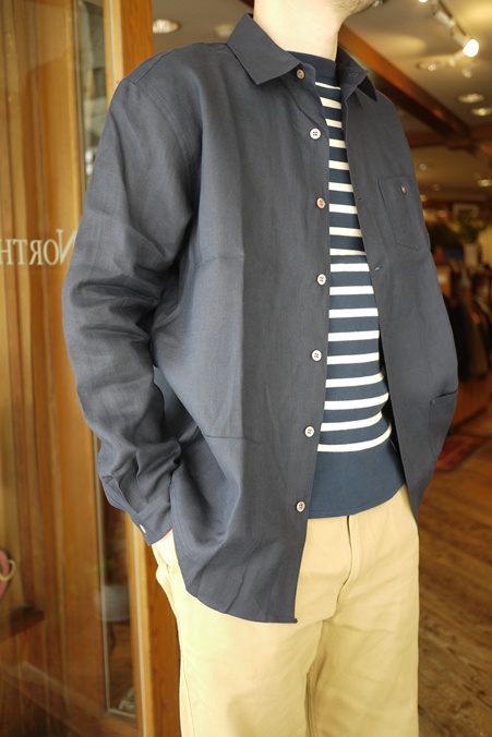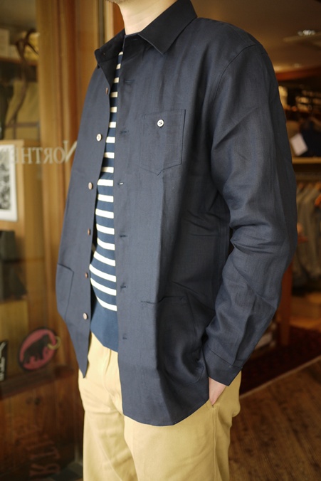 SOUTIENCOL "SHIRT JACKET" #161006 CAMBRIC LINEN NAVY(29)