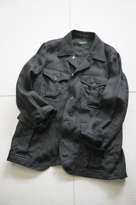 TAKE & SONS "NORMANDY LINEN BUSH JACKET" BLACK