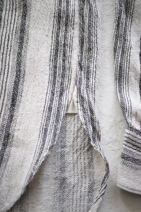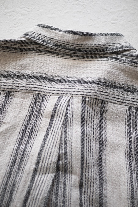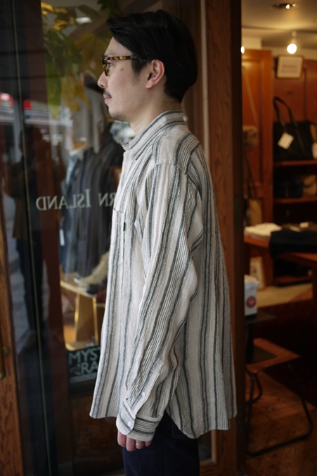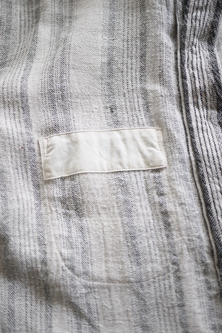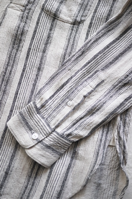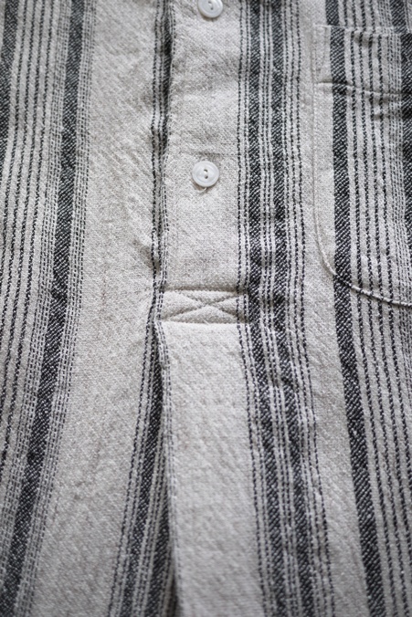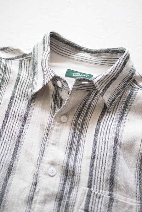 TAKE & SONS "LINEN TWEED GRANDPA SHIRT" STRIPE