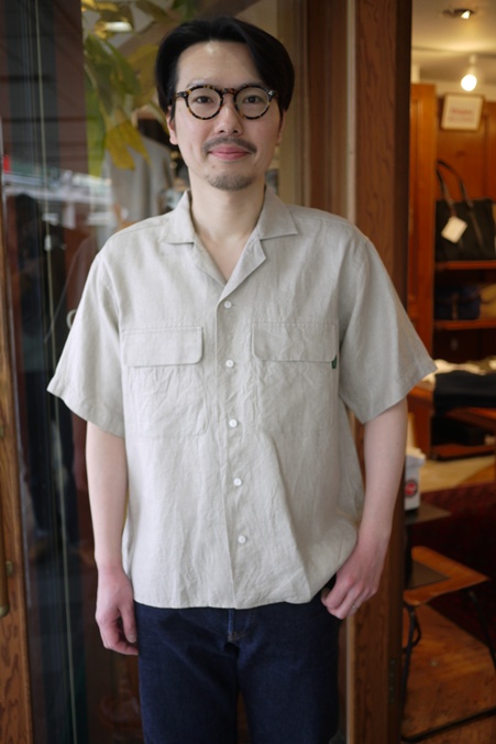 TAKE & SONS "LINEN OPENCOLLAR SHIRT" NATURAL