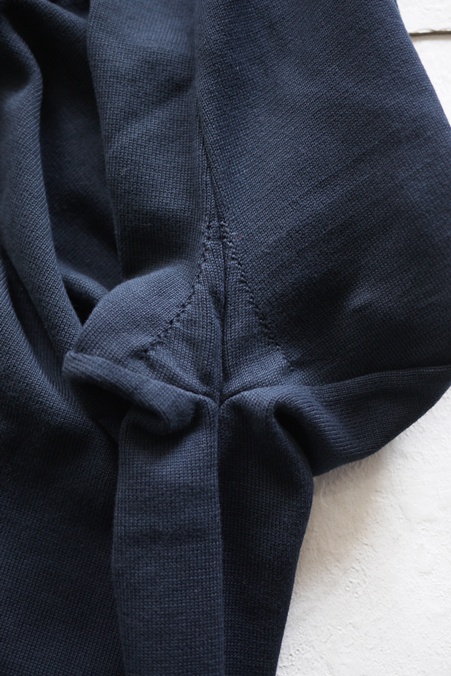 極限まで度目を詰めたヘビーウェイトな編地は、