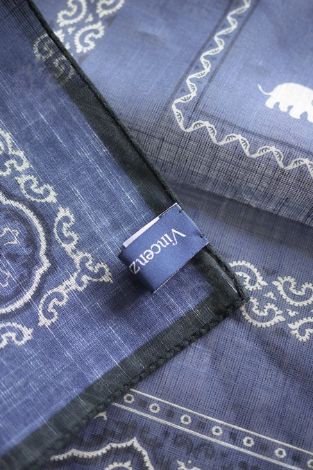VINCENZO MIOZZA COTTON/LINEN SCARF #057425 NAVY ELEPHANT COL.1