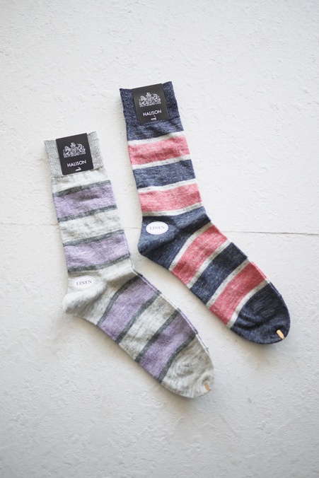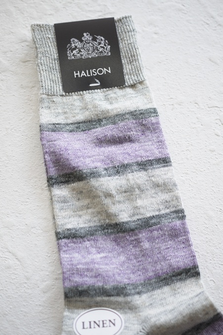 HALISON #626552 "LINEN RUGBY BORDER SOCKS" L.GRY(D)