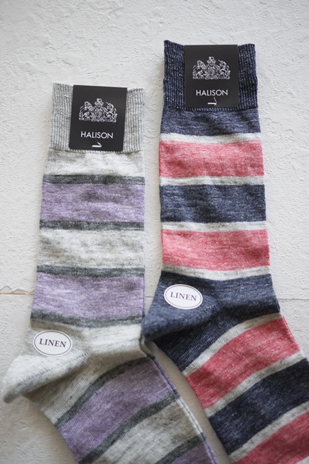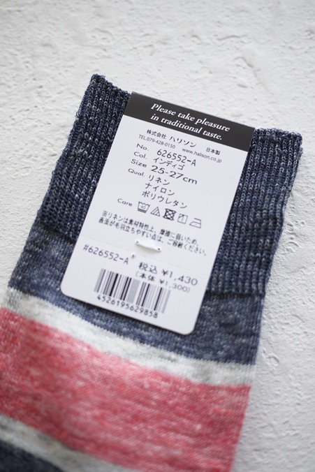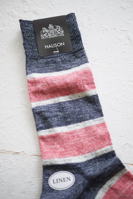 HALISON #626552 "LINEN RUGBY BORDER SOCKS" INDIGO(A)