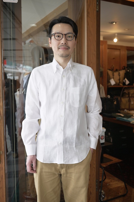 ボタンダウンの命である美しい襟のロールもおんなじです。