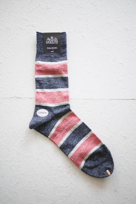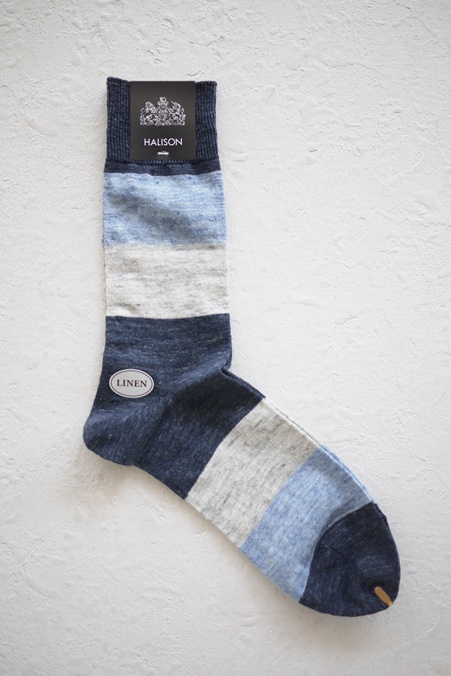HALISON #626552 "LINEN RUGBY BORDER SOCKS" INDIGO(A)